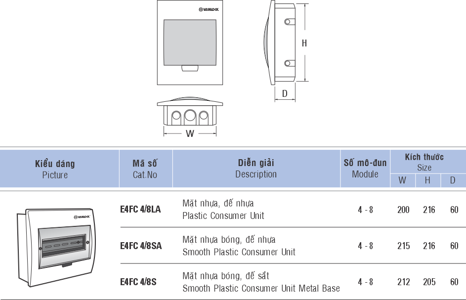 • Khả năng chứa: 4-8 module (18mm/1md)