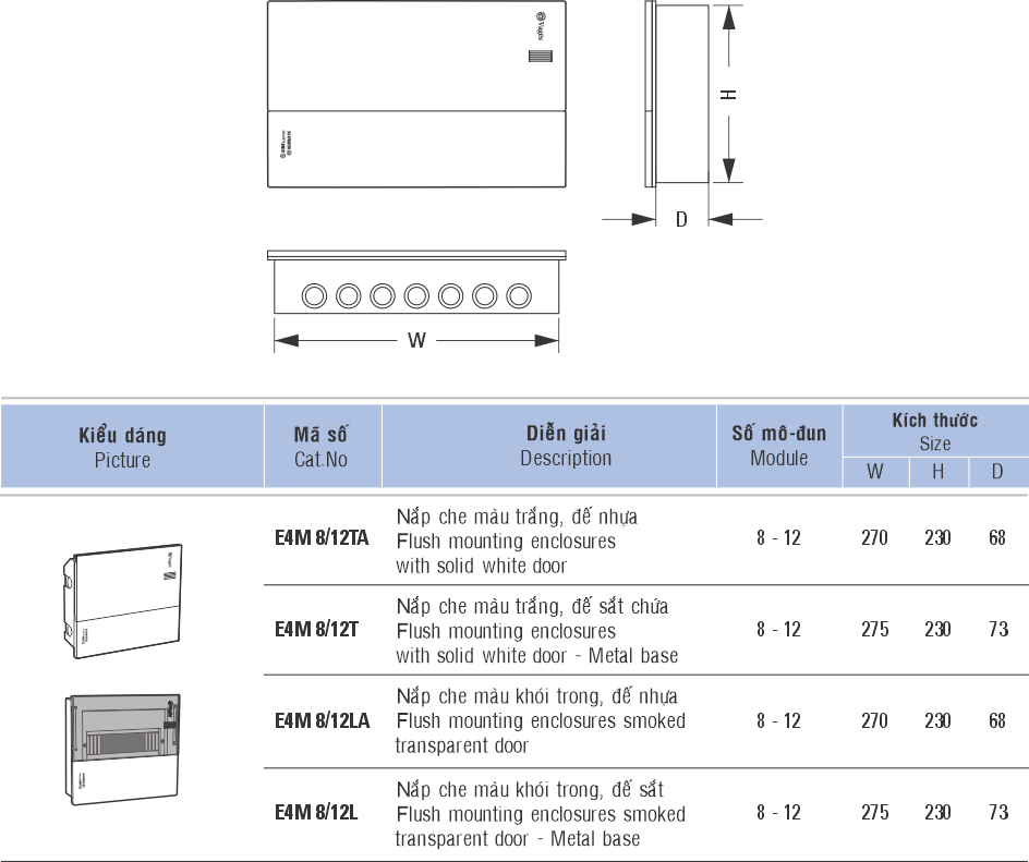 • Khả năng chứa: 8-12 module (18mm/1md)